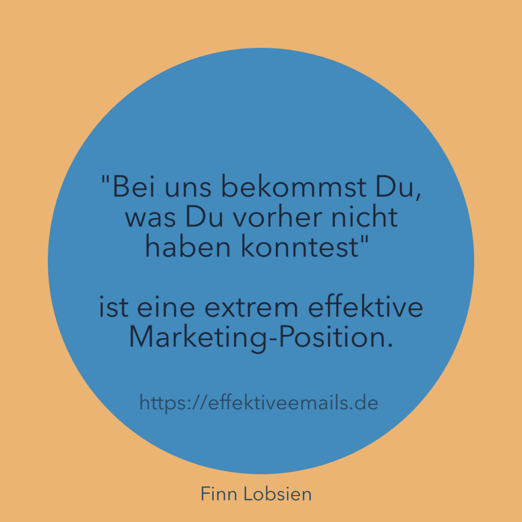 „Bei uns bekommst Du, was Du vorher nicht haben konntest“ ist eine sehr effektive Marketing-Position.