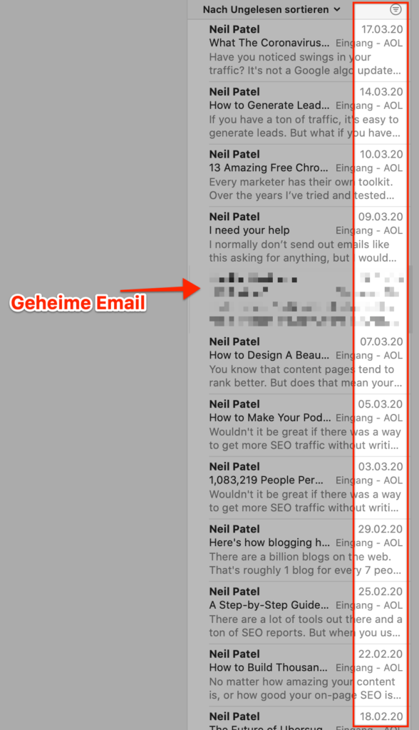 Du siehst richtig: Neils Emails kommen alle 2-3 Tage. Die meisten hätten Angst, ihre Leser zu nerven.
