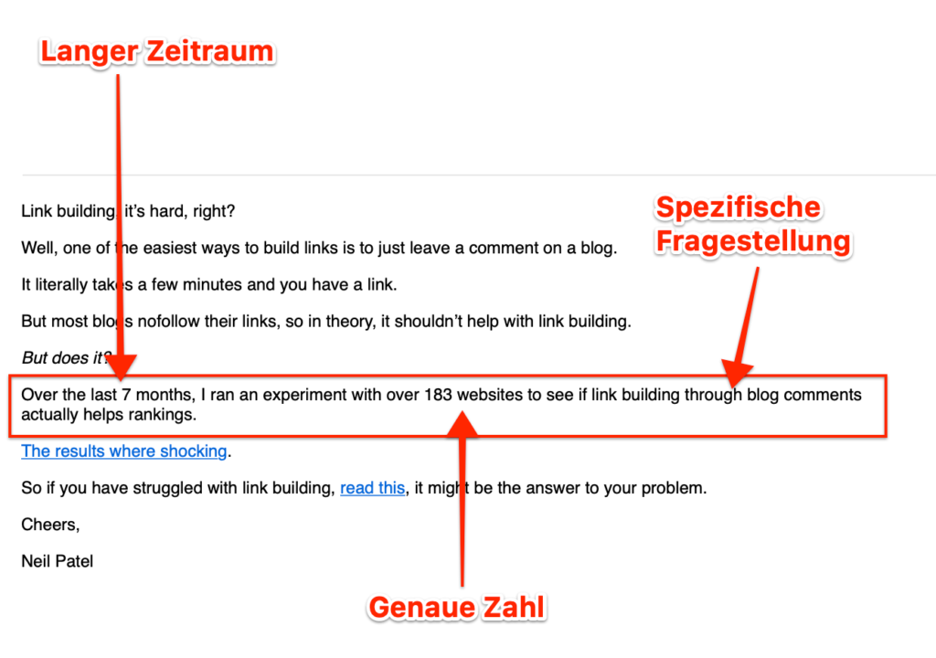 Neil sagt hier, dass die Ergebnisse anders als erwartet waren. Das erzeugt weitere Neugier im Email-Marketing.