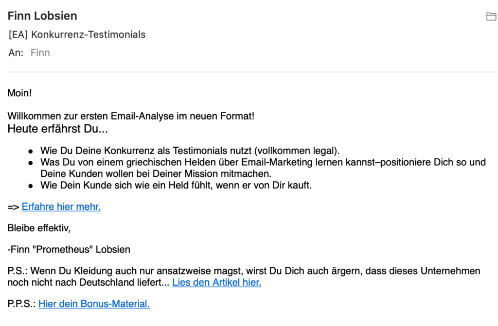 Diese Emails funktionieren, weil sie auf den ersten Blick einfach zu verarbeiten sind. Unser Gehirn schaltet sofort weg, wenn wir eine Textwand sehen.