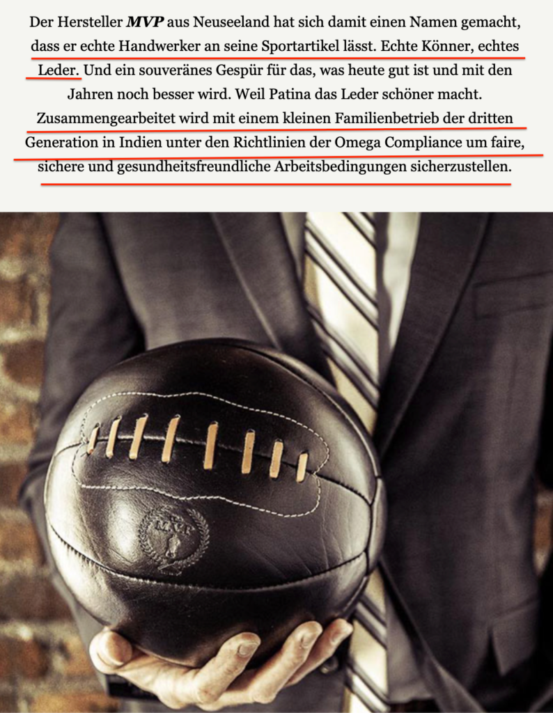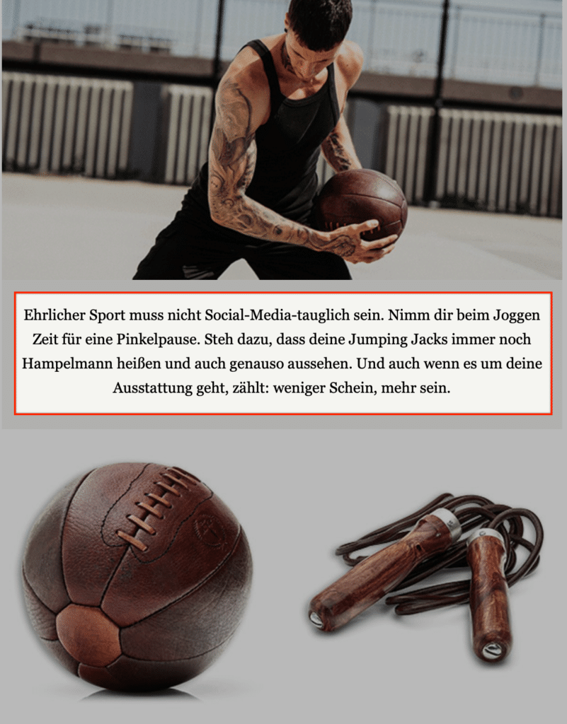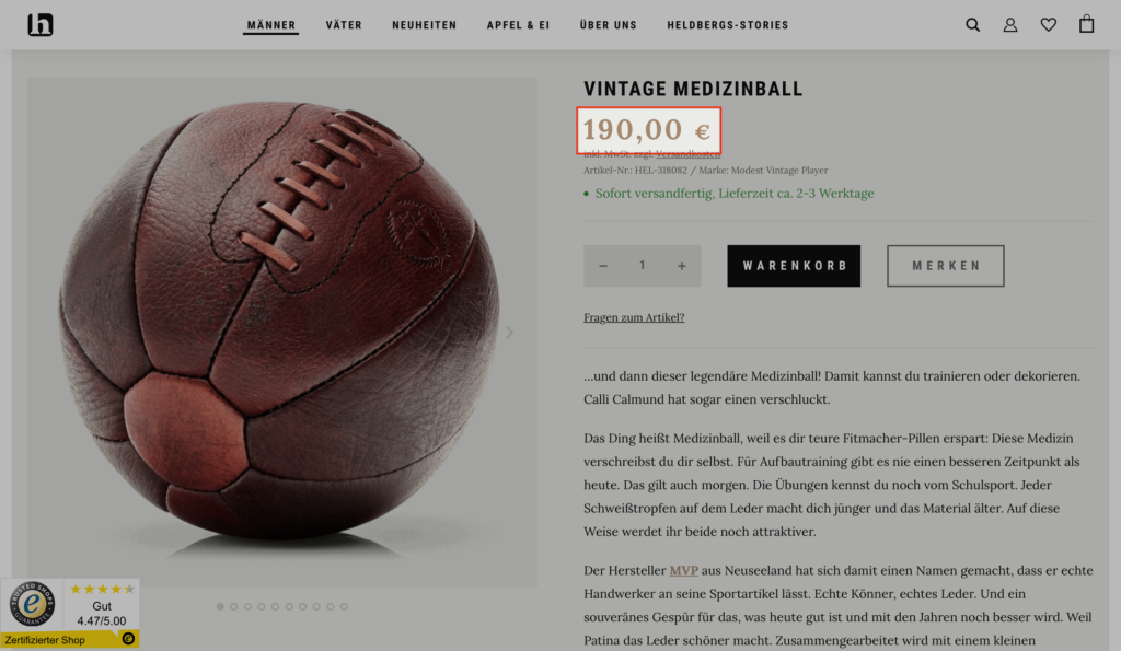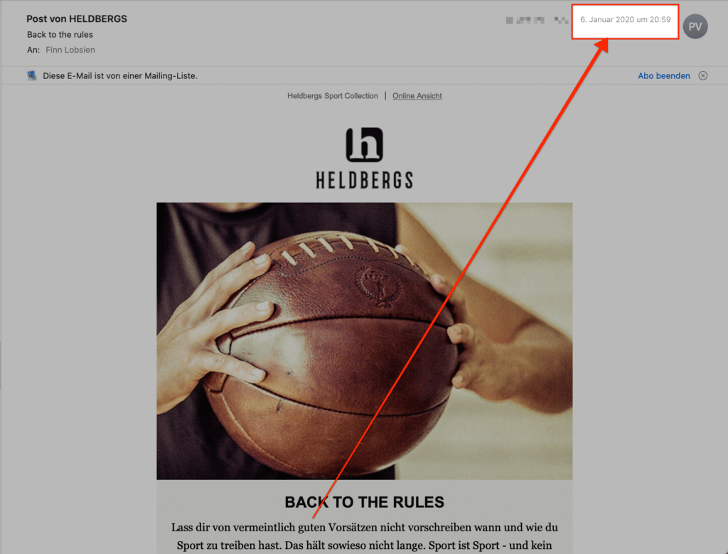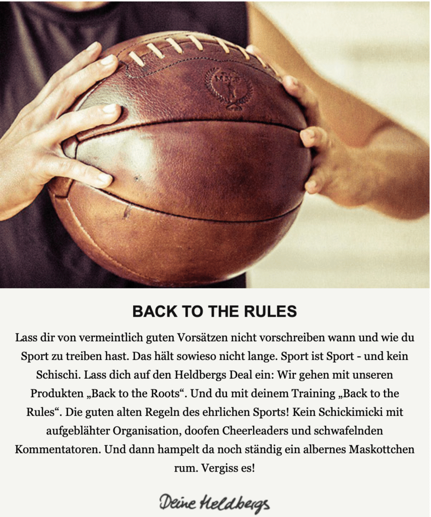 In dem Screenshot oben siehst Du, wie man das Ganze auch subtil lösen kann. Denn Heldbergs hat das Ganze klug gelöst. Wir wissen alle, dass Fußbälle nicht von Handwerkern liebevoll handgemacht werden. Da der Newsletter aber erwähnt, dass das hier der Fall ist, gewinnt auch dieser Absatz die heiß begehrte Aufmerksamkeit.